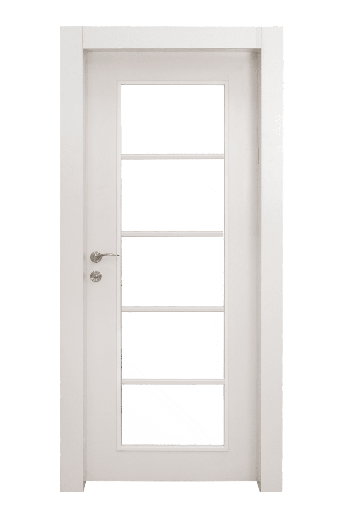 דלת פנים בתוספת 6-חלונות מרובעים לאורך בצבע לבן