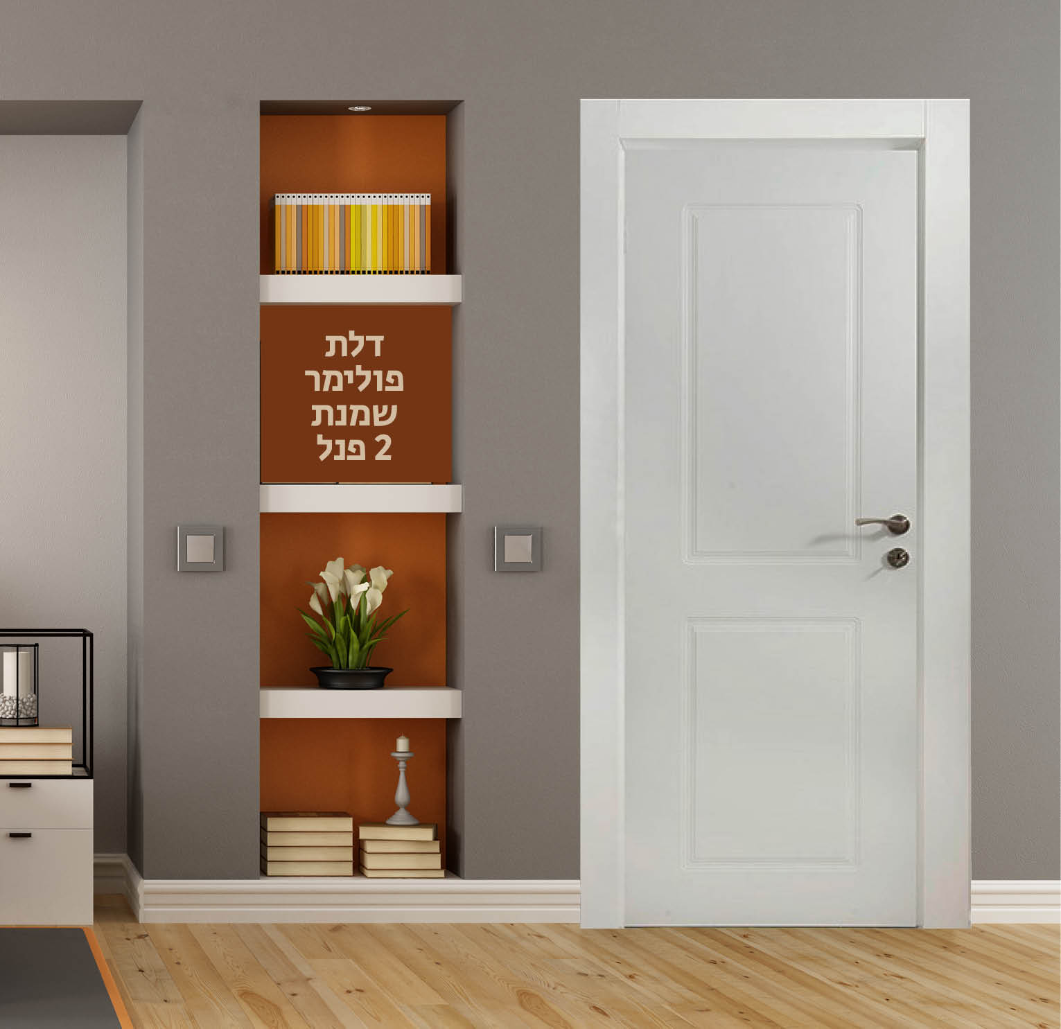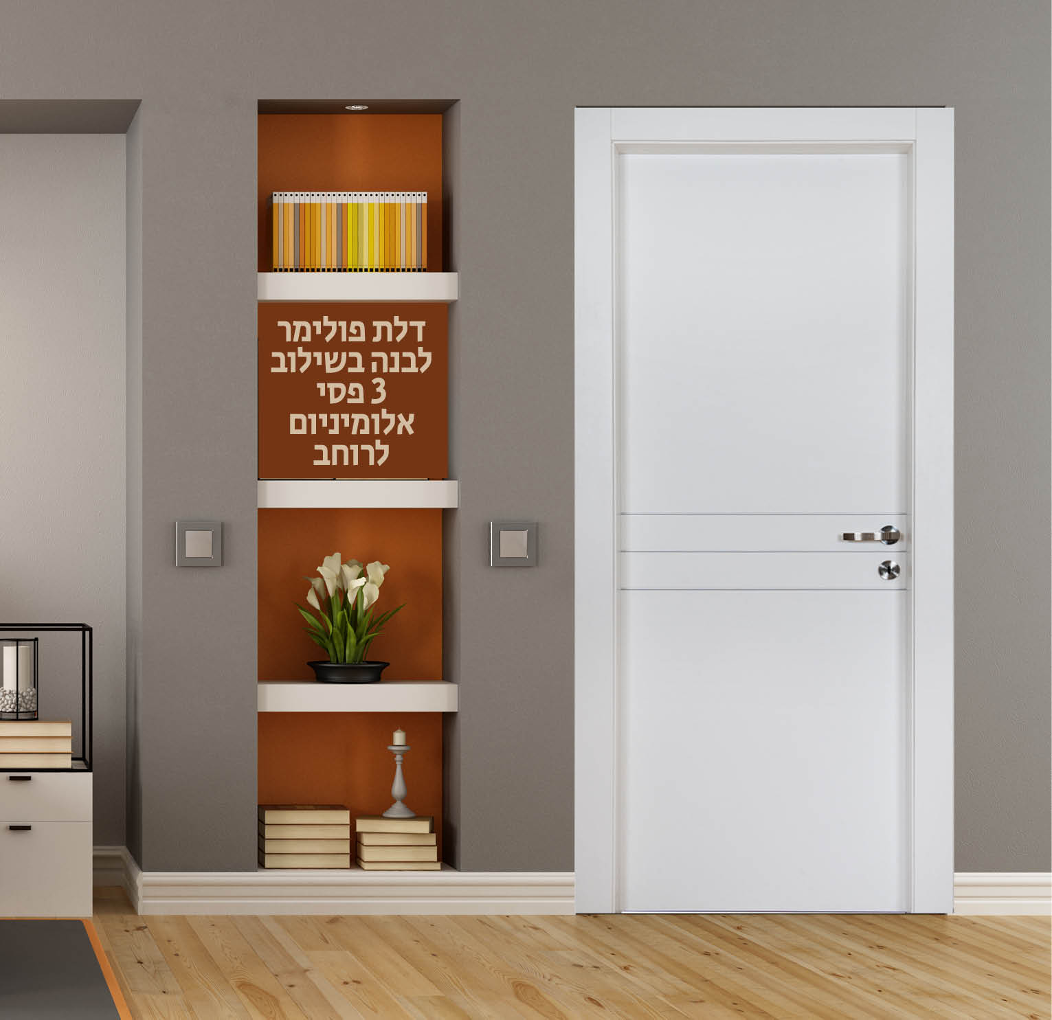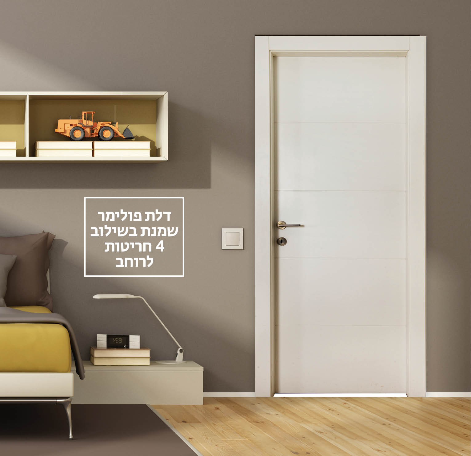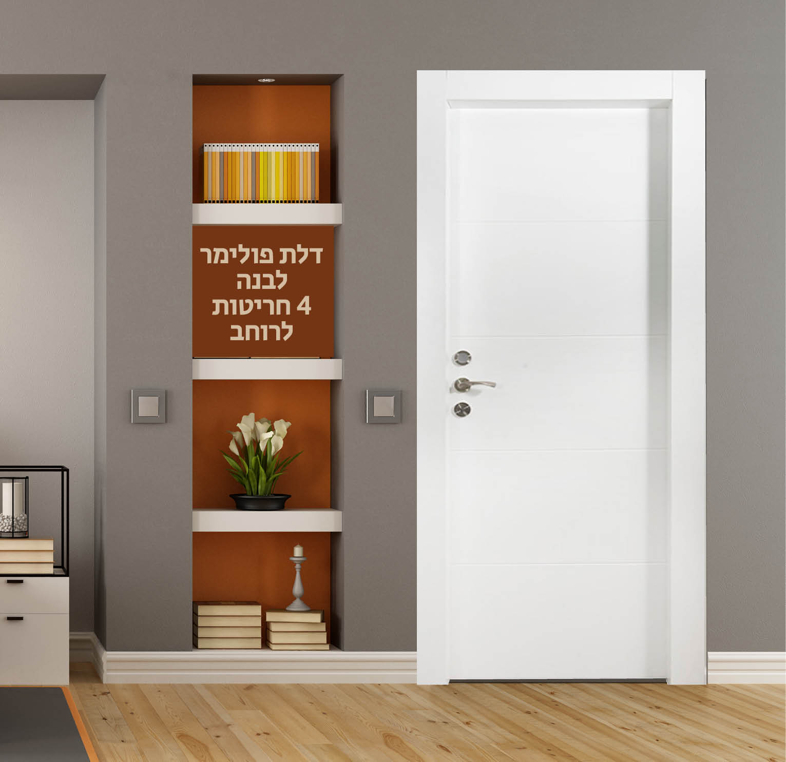 דלת פולימר לבנה 4 חריטות לרוחב