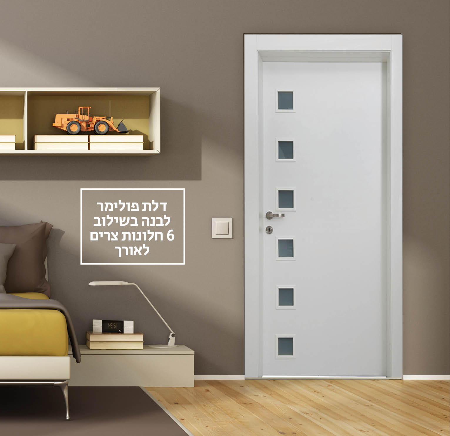 דלת פולימר לבנה בשילוב 6 חלונות צרים לאורך