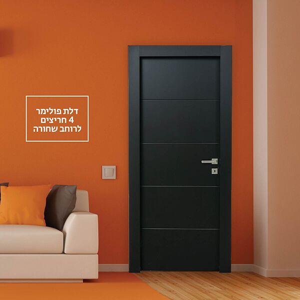 דלת פנים 4 חריצים לרוחב בצבע שחור